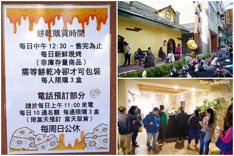 ▼購買當天雖然是開幕第二天,但已經吸引不少朋友前來搶購啦~這裡相較前兩間分店來說不僅空間更大,還有提供座位休憩區與洗手間,讓大家可以邊休息邊等待,感覺更加貼心啦!因為短腿阿鹿餅乾都是當天新鮮現烤,所以都是從中午12:30開始現烤現賣(每人限購三盒),不過要等到餅乾冷卻才可以包裝,為了美味大家可得耐心等候一下~另外也接受電話預約,每天上午11點會接受10通電話預約(當日預訂、取貨),大家不妨可以試著撥打看看,就可以少等一下下啦XD