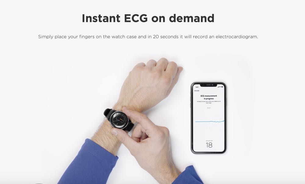 自從 Apple Watch 嘗試了搭載心電圖的功能後,也是智慧配件大品牌的 Withings 就緊接著為大家帶來 Withings Move ECG,在手錶的背部與裱框上加了感測器,只要將手指放在裱框兩側 20 秒中,便能出現心電圖波段顯示。