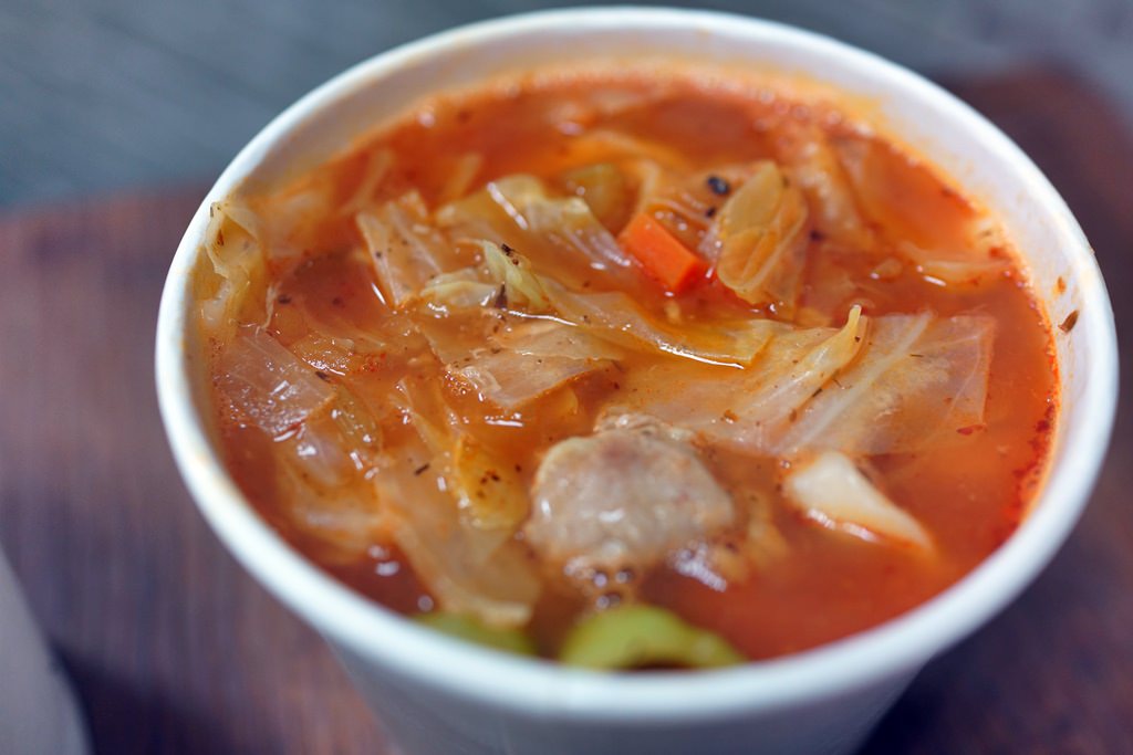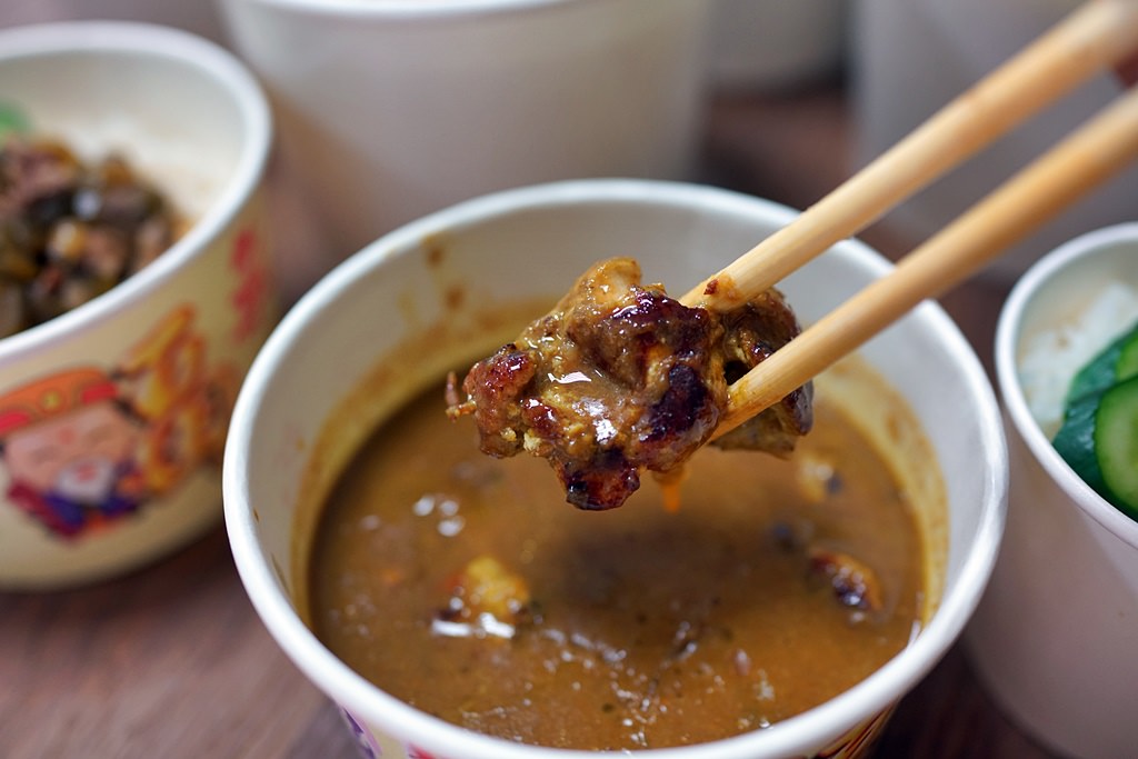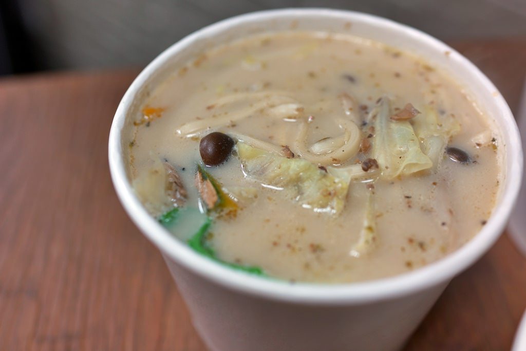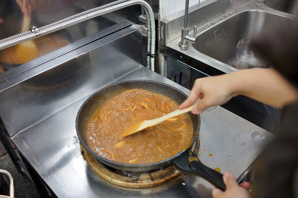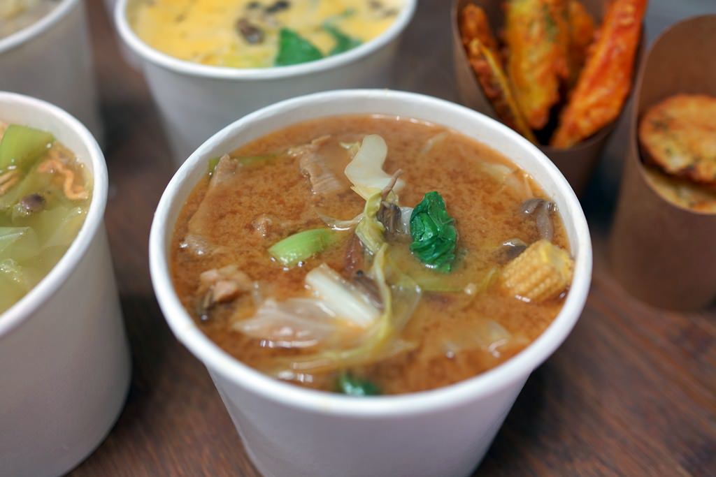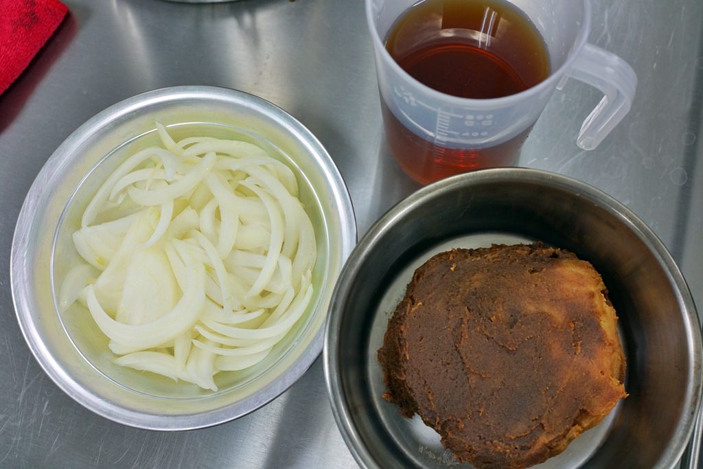 以黑白味噌、洋蔥拌炒而成的醬料,加入昆布柴魚高湯,湯頭味道很像在吃味噌拉麵,搭配蒸煮麵特別會吸湯汁,我們那天試吃覺得有點偏鹹,當下有馬上跟老闆反應,老闆說之前有客人反應味道太淡,才稍微調整了一下。