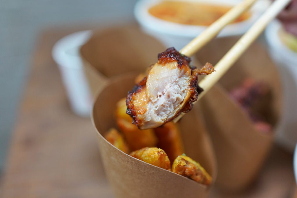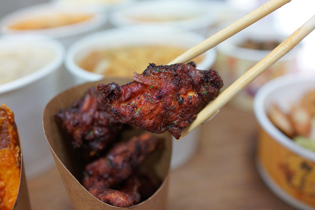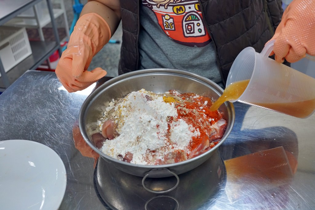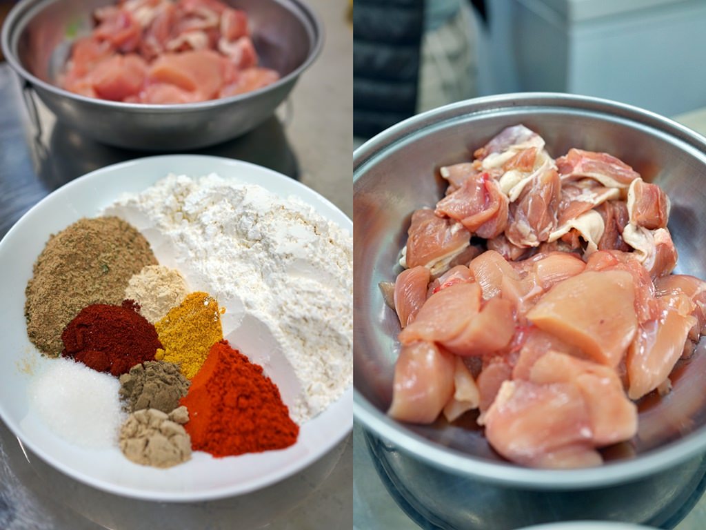 肥雞廚房的炸物全都是百分百自製而成,使用多種香料加上自製乾粉、檸檬原汁,均勻裹上雞胸與雞腿肉後再醃製24小時入味,吃起來有著濃郁的香料味,以及檸檬的清香,外皮會比一般炸雞顏色要黑,是因為香料醃製的關係,口感是外酥內嫩、富有肉汁,完全沒有焦味喔!