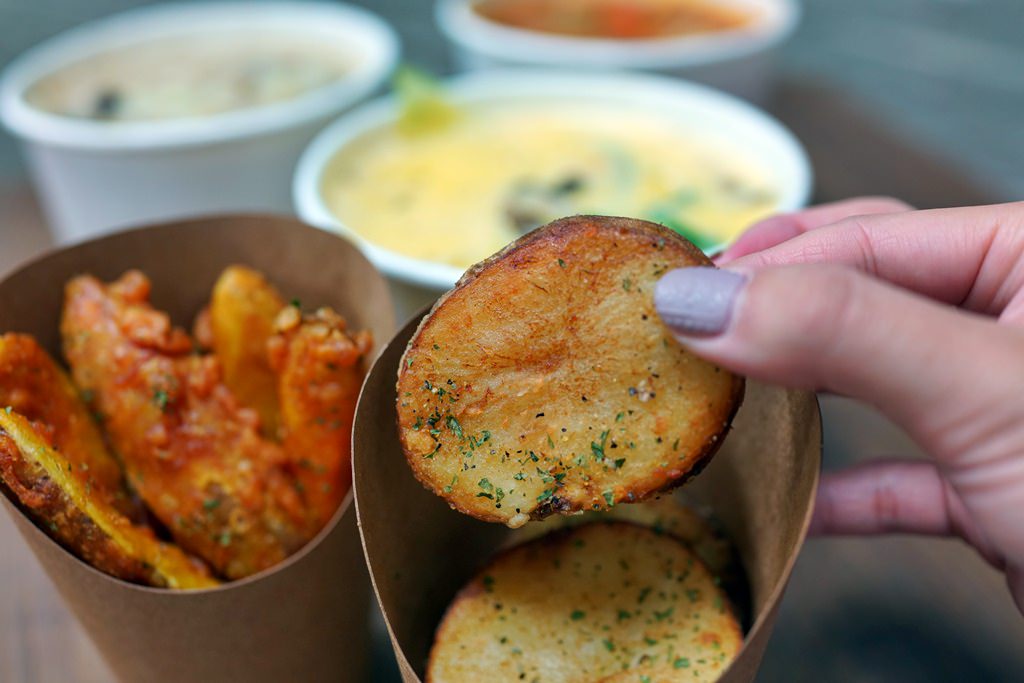 厚切薯片是裹上自製乾粉炸至金黃再灑上特製香料粉,吃起來會比較偏向原味的炸馬鈴薯,口感很厚實,這款可以直接給小孩吃沒問題,不用擔心口味太重。