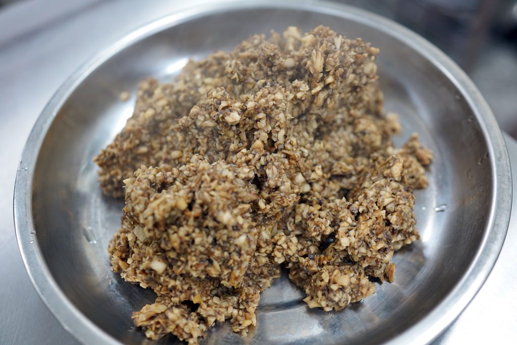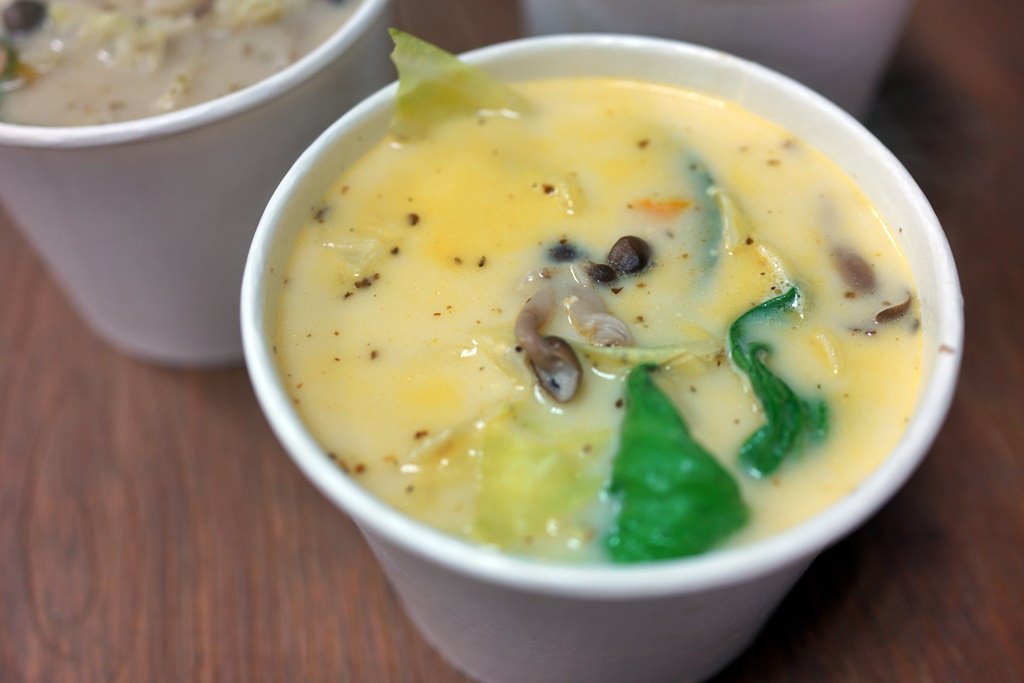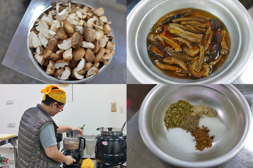 老闆還現場示範了五種湯頭之一蘑菇濃湯醬料的作法,使用新鮮蘑菇、香菇、杏鮑菇、鴻喜菇以及茶樹菇乾,打碎後一起乾煸,最後加上鮮奶油就完成了,超香的!