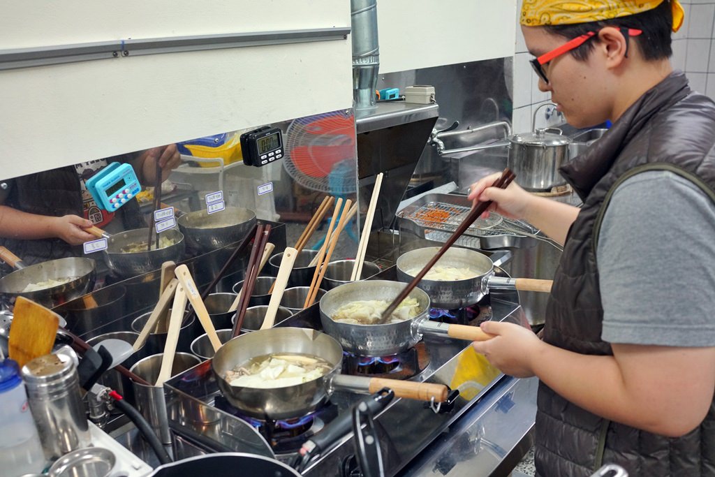 前面有提到,鍋燒麵的湯頭共有五種,可搭配六種麵條,讓我很驚喜的是,老闆連煮麵的筷子湯匙都有做區分,就算同時煮五種不一樣的湯頭,味道也不會混在一起!