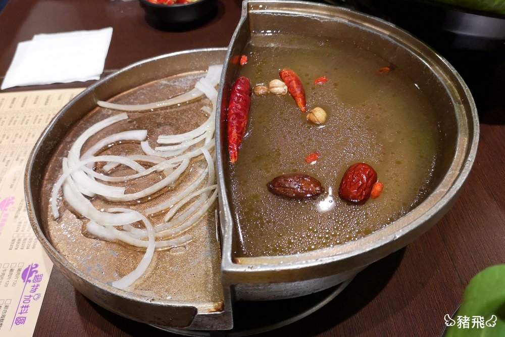 很蒙古味的湯底喝起來清爽,用來涮牛肉片更顯肉片滋味,店家特別的火烤兩吃鍋具,讓火鍋吃的滿足又有趣。