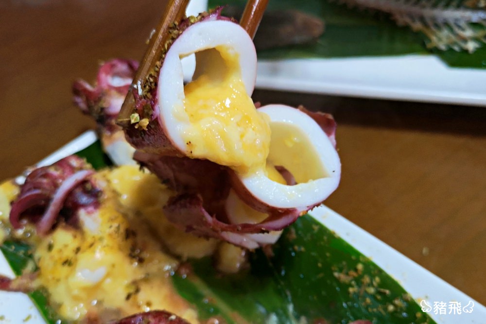 起司中卷:把中卷裡塞滿起司靠到金黃色起司融化,中卷還保有Q彈口感,很有創意的一道料理,肥美飽滿的中捲搭上起司意外的搭。