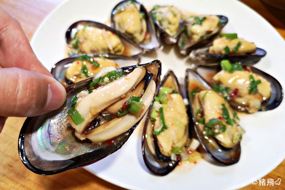淡菜肉質超肥美,有黃肉、白肉,新鮮淡菜不用特別調味就很好吃,在嘴裡可以感受到肉質飽滿噴汁的感覺。