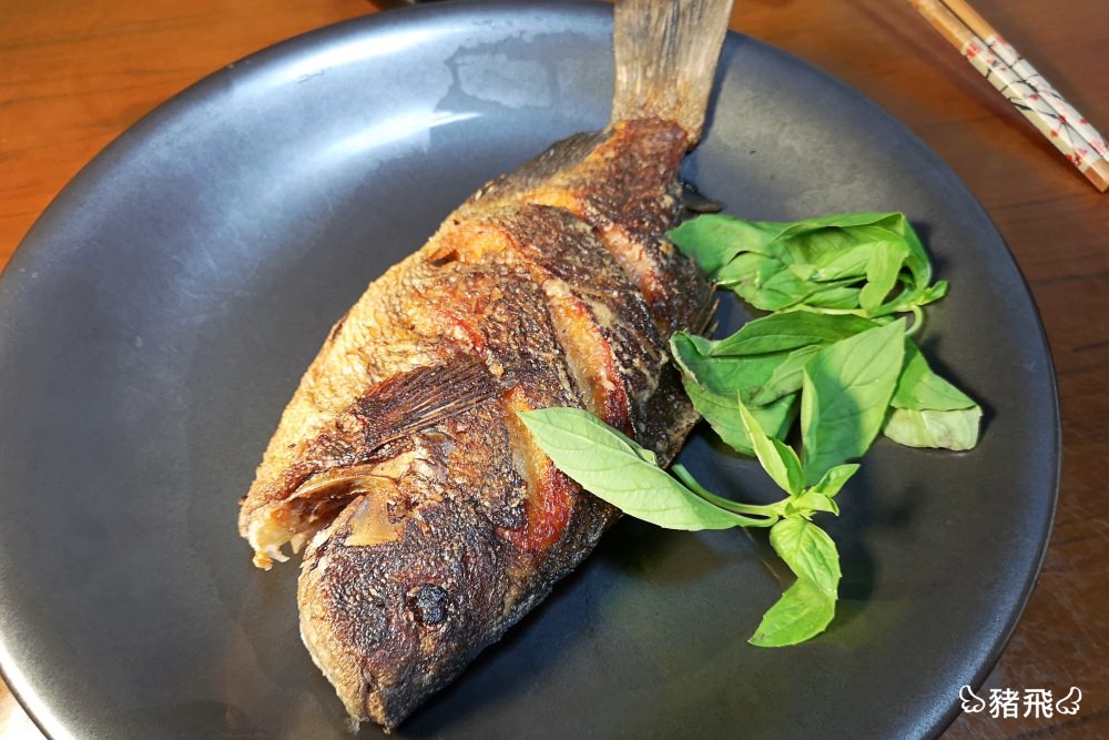 蝦油炸黑毛魚:黑毛魚又稱「瓜子鱲」,是台灣原生魚種,肉質鮮美細嫩,有的海產店每公斤批發價喊到700元以上,非常昂貴,