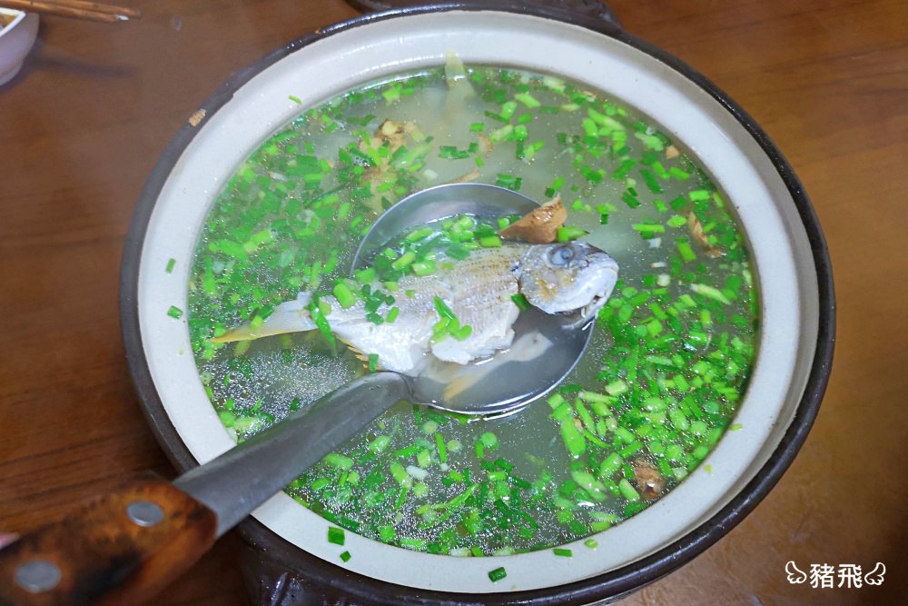 班頭魚湯:這鍋用了5-6隻班頭魚煮湯,體型不大,肉質細緻,湯頭特別甜。