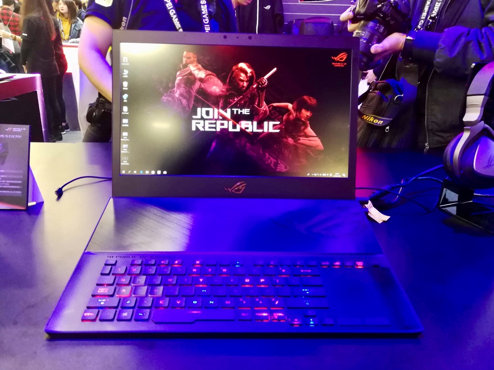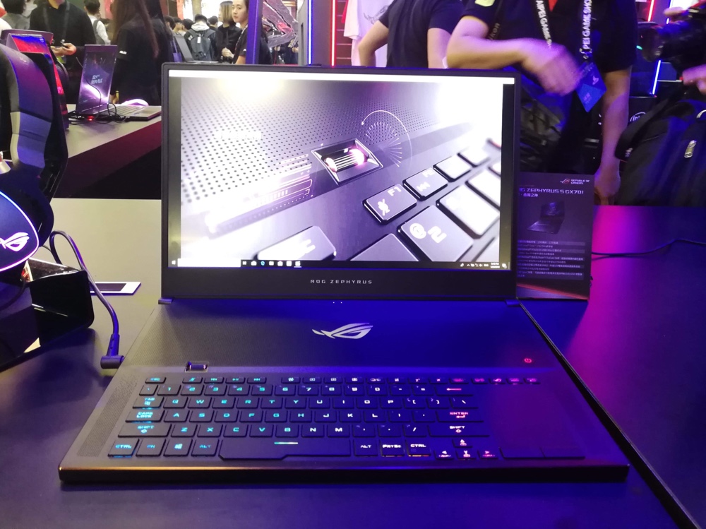 世界上最薄的 17 吋電競筆電 ROG Zephyrus S(GX701)也在攤位上同步亮相,極窄邊框加上 81% 螢幕佔比,讓這台 17 吋筆電能放入 15 吋的筆電袋中。最高搭載第八代 Intel Core i7 處理器,以及目前最新的 RTX 2080 Max-Q 顯示卡,搭配 ROG 獨有的 ASS 散熱設計、具有防塵通道設計的 12V 雙風扇,可以維持筆電效能穩定。