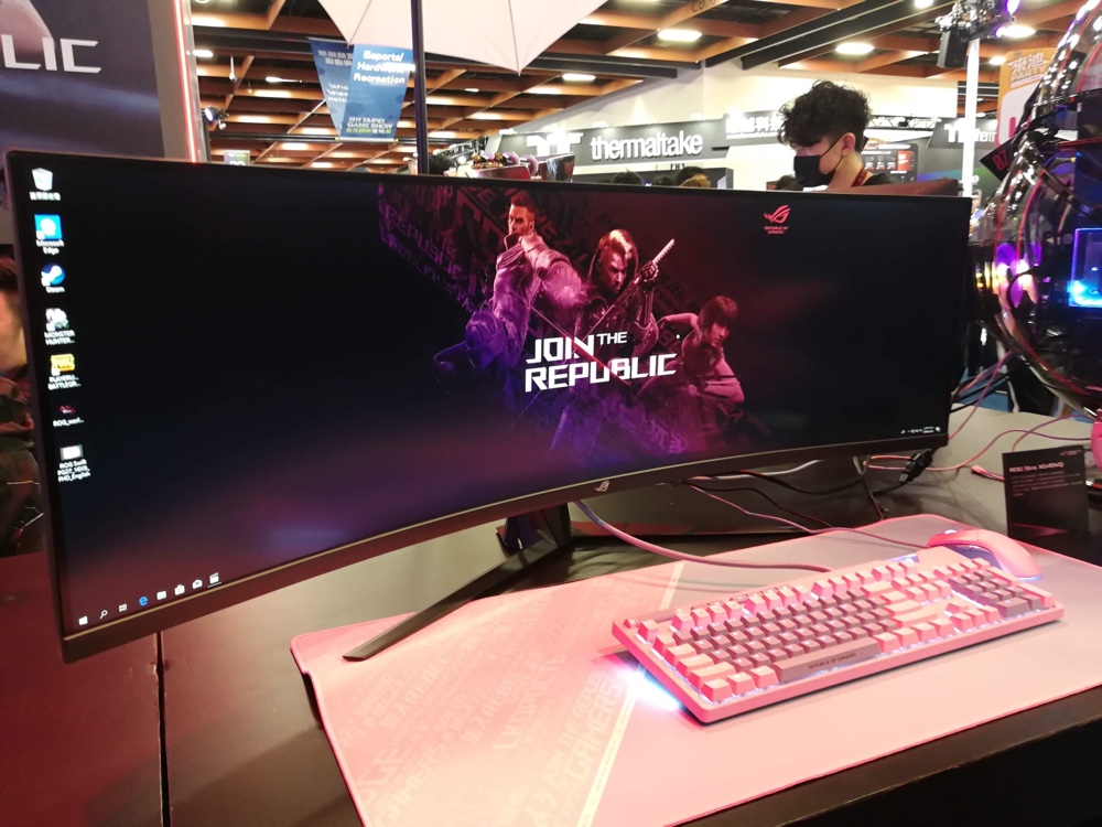 現場還能看到 ROG Strix XG49VQ 曲面電競螢幕,採用 32:9 的 VA 面板,解析度為兩倍的 FHD 解析度(3840 × 1080),144Hz 更新率與 4ms 反應時間,讓 FPS 玩家擁有寬廣的遊戲體驗,還能佔有硬體帶來的優勢。來到 ROG 攤位的玩家還可以體驗 ROG Gladius II Wireless 無線電競滑鼠,具備 16,000 dpi、1ms / 2.4GHz 低延遲藍牙表現。搭配現場展示的 ROG Balteus Qi 無線充電滑鼠墊,利用 Aura 生態系統同步串聯你的 ROG 設備 RGB 燈光效果,展現你最堅強的信仰吧!