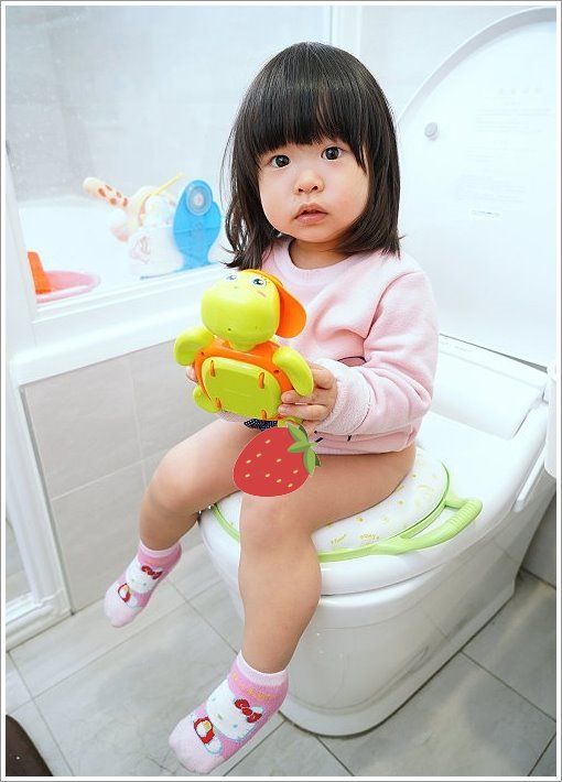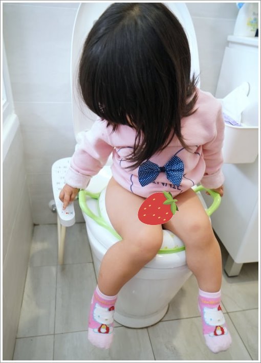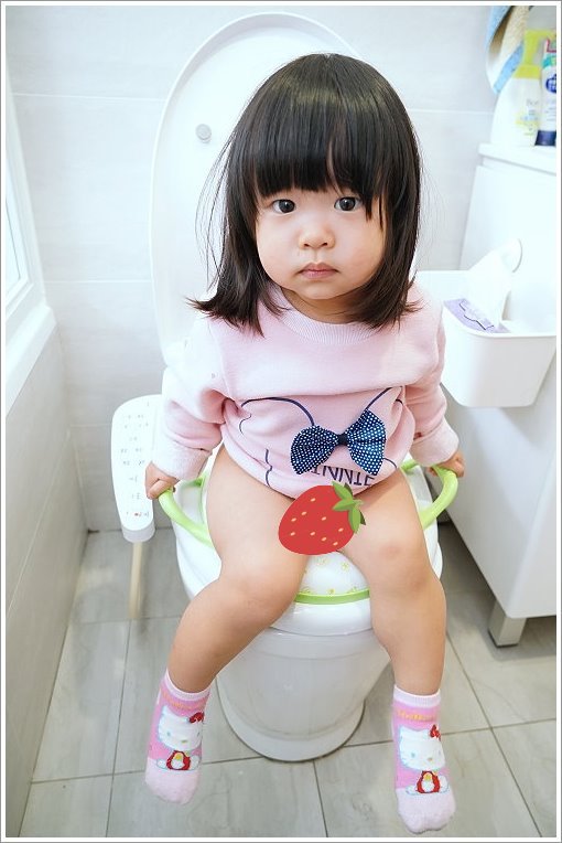 ▼像小口妹最近在戒尿布練習自己上廁所,我們就會讓她使用輔助馬桶座!