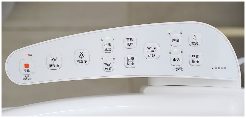 ▼上完廁所也可以順便沖乾淨、烘乾,這樣把拔馬麻也不用特地彎腰擦屁股,使用兒童洗淨功能時也不用擔心小朋友會隨便亂按功能鍵而發生危險!