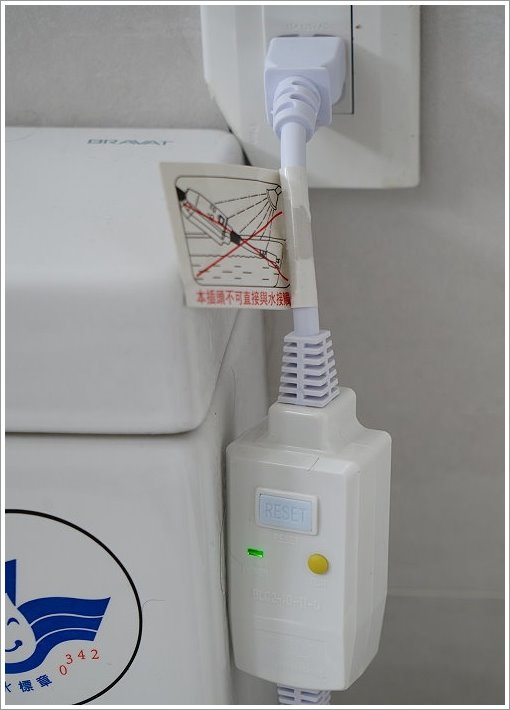 ▼電源插座上可以測試與預防漏電自動斷電功能,如果家中沒有乾濕分離的朋友就要特別注意不要在淋浴時去潑灑到!