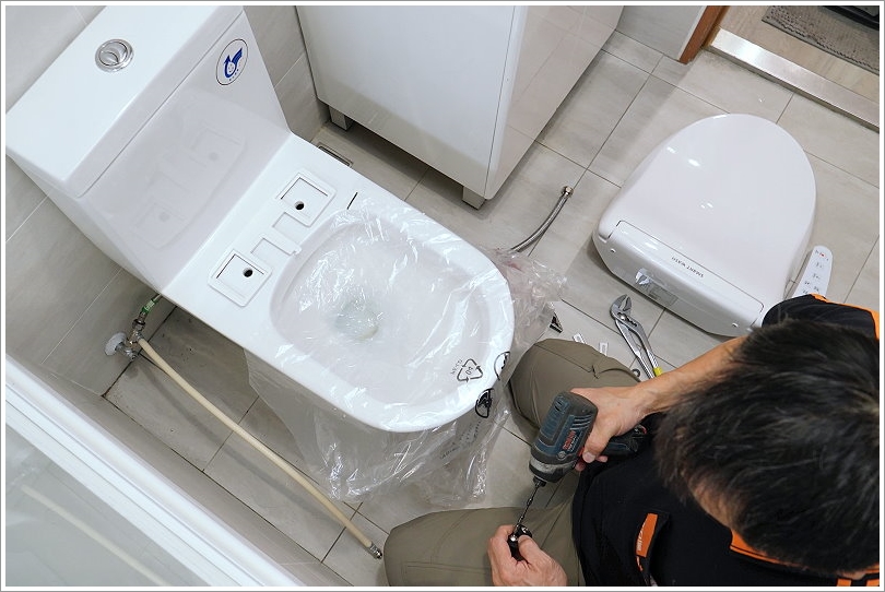 ▼登愣!免治馬桶安裝完成,從今以後就可以擺脫屁股冰涼的命運,還可以讓屁屁保持乾爽衛生!