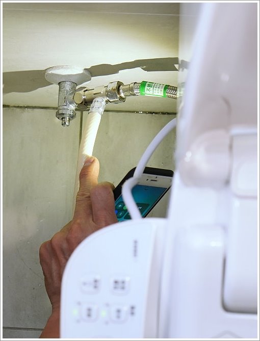 ▼最後裝機人員還會用手電筒確認接頭有沒有漏水,真的很仔細呢!