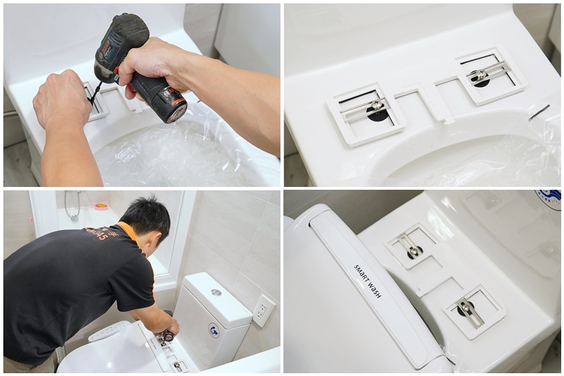 ▼接著開始鑽孔將安裝板、安裝托板牢牢固定住,就能準備將智能坐便器底部安裝上去囉!