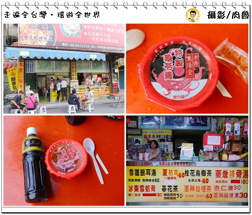 ▲想吃純正龜苓膏不用再跑到香港啦,來到東港東隆宮前的東隆堂歸苓膏就對啦,龜苓膏可是清朝貴族才能吃到的御用養生甜點,除了龜苓膏還能喝一罐退火的仙草茶,其餘像是杏仁凍、夏枯草茶、雪蓮銀耳湯也都很受歡迎。