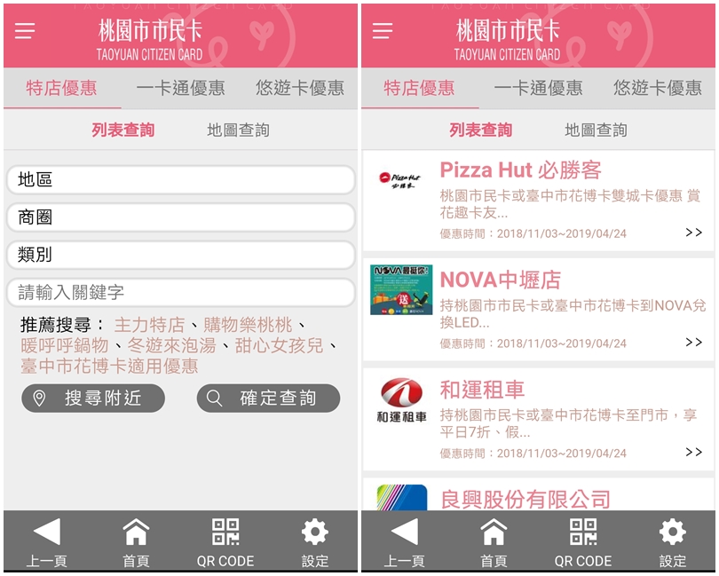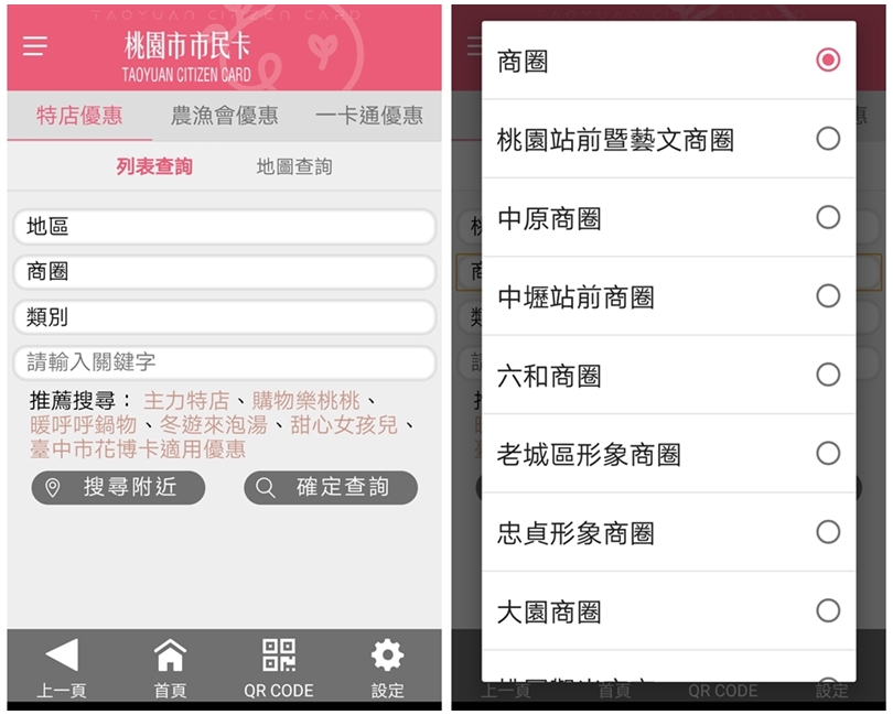 ▼大家可以針對自己所在區域來查詢相關商圈的店家優惠,或是直接輸入店家名稱查詢,方便又實用!另外也有農漁會優惠、一卡通/悠遊卡優惠可供查詢!