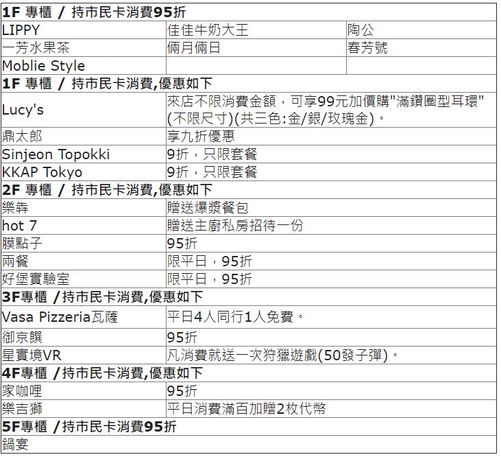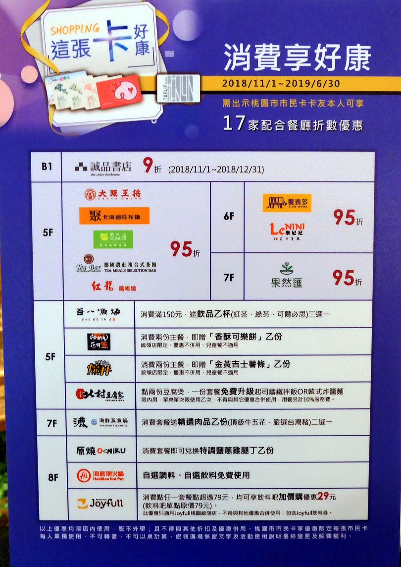 ▼每層樓都有不同的店家優惠,不管是折扣或是贈品通通有,有興趣的朋友可以趕緊帶著市民卡揪團一起來聚餐啦!