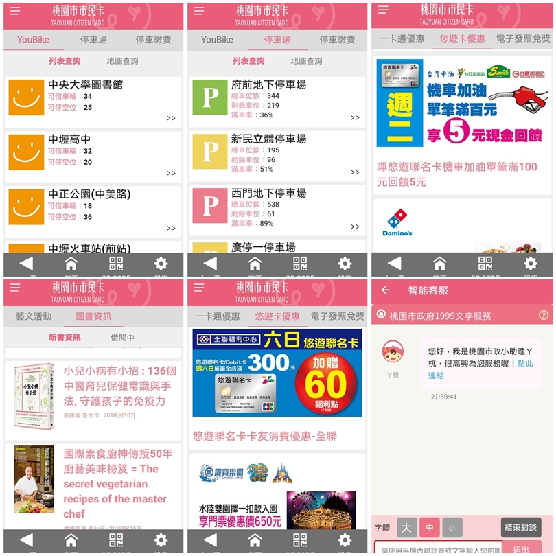 ▼此外還有YouBike、停車場、停車繳費、圖書資訊、悠遊卡/一卡通優惠及電子發票兌獎等查詢功能,不管是想要查詢交通、圖書或是生活上有加油、購物、吃飯等需求的相關優惠通通都能一目了然,真的是非常方便又實用的一款APP!