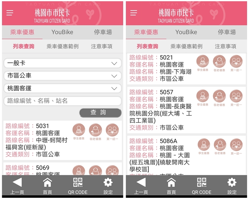 ▼所有的交通優惠在桃園市市民卡APP都能一目了然,另外還包括YouBike、停車場也都有定點資訊可供查詢,也就是下載這一個APP就可以通通搞定啦!