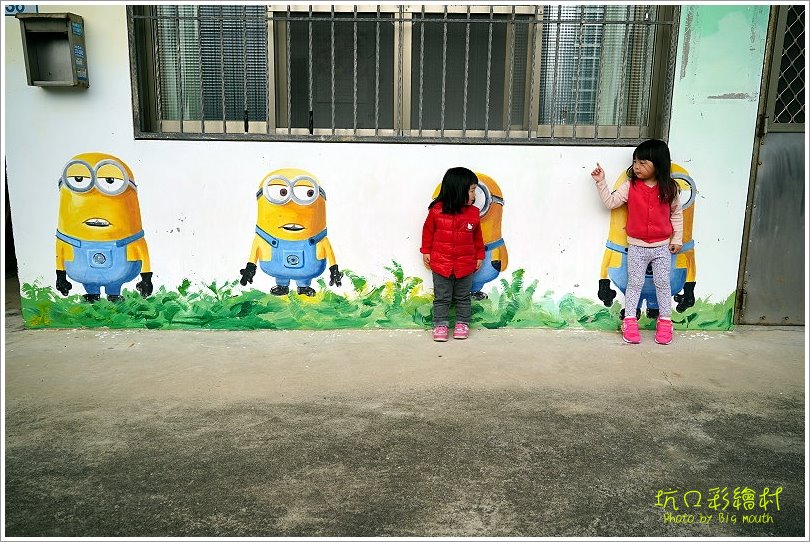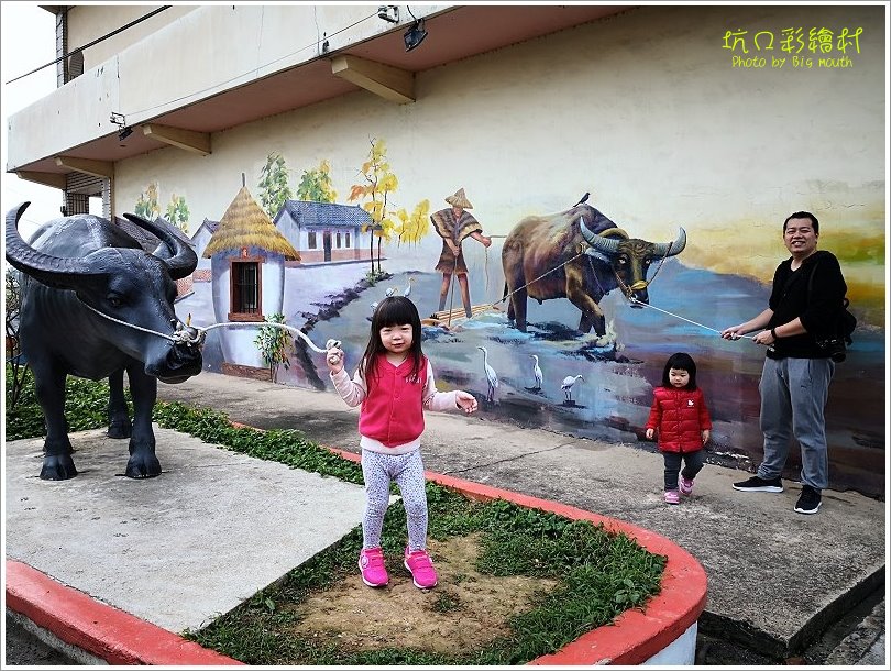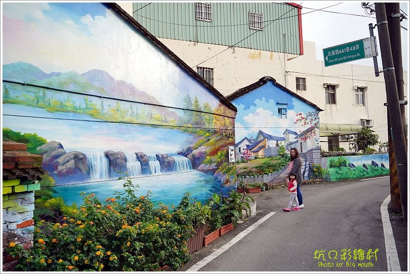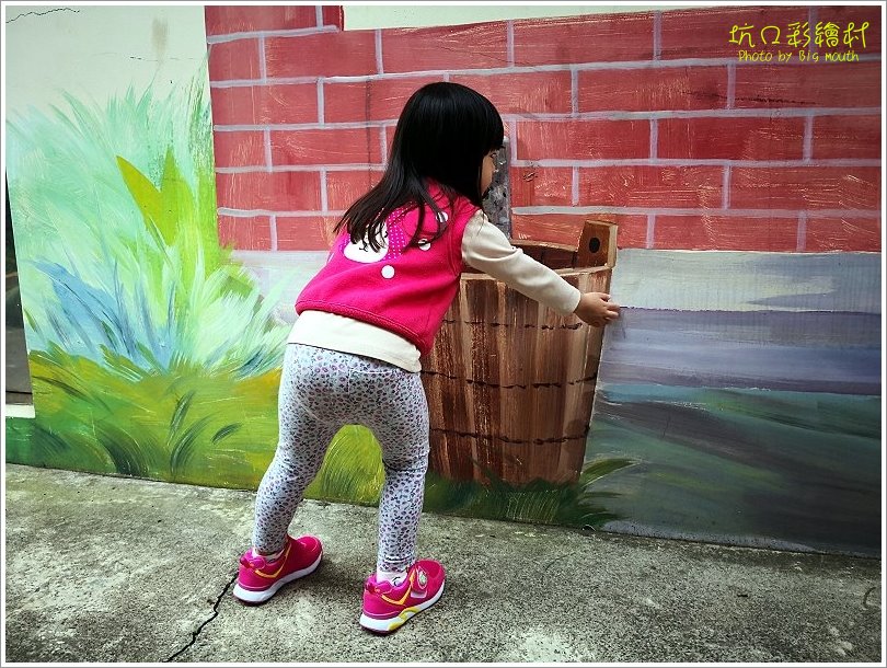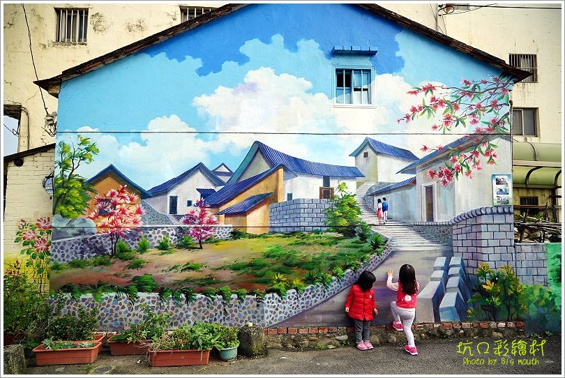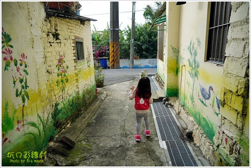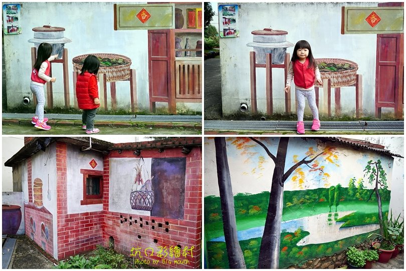 「坑口彩繪村」不僅佔地還不小,順著路走、按圖索驥就能發現很多小驚喜,真是太促咪啦!其中還有不少農村生活的寫照,讓從沒見過的小倆口非常有興趣,一邊牽手散步一邊拍照玩耍,很適合帶著小朋友來這裡走走晃晃,也能玩上個大半天呢!有興趣的朋友不妨可以來這個免費景點逛逛,還可以一邊拍照一邊看飛機,真的是非常有意思,推薦給大家囉~