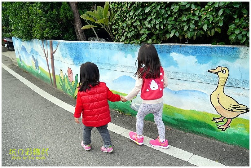 ▼小倆口顯然很喜歡這裡,附近都是彩繪牆面跟農村,因為車子不多,所以她們就手牽著手自己慢慢走,一邊散步一邊發現不同的彩繪驚喜!