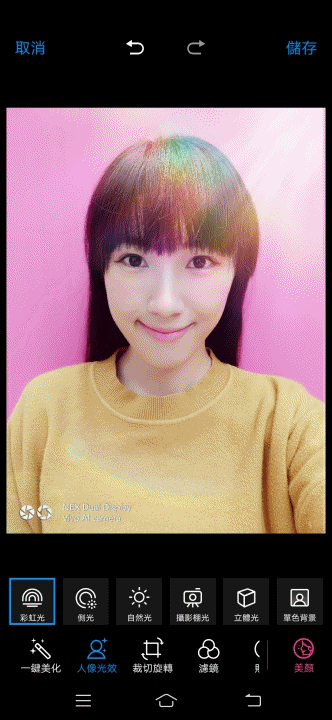 vivo NEX 雙螢幕版提供多種自拍時可用的燈光效果,以下為自拍光效示範: