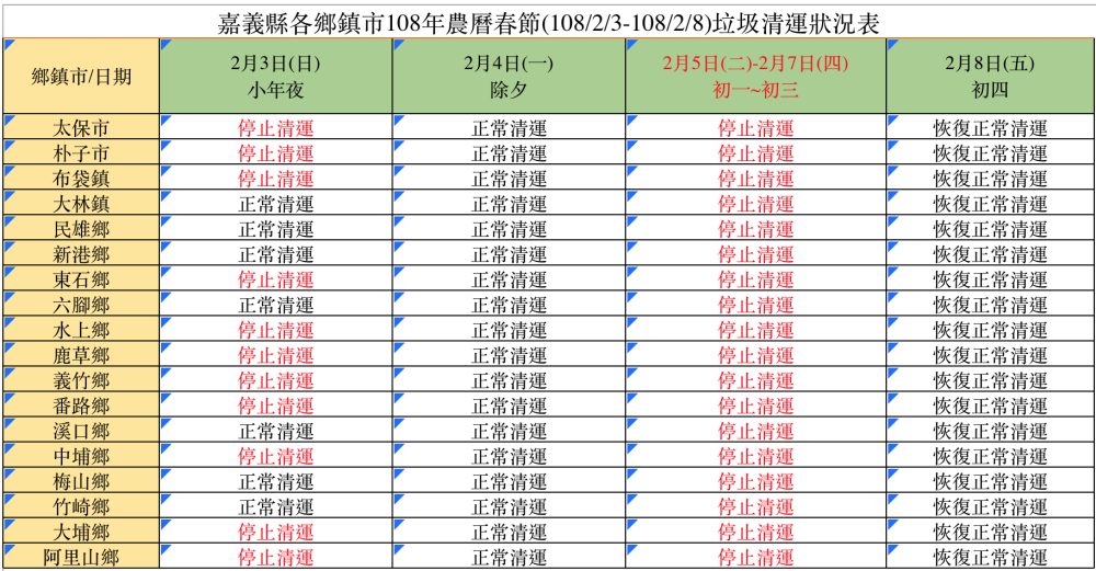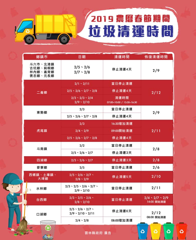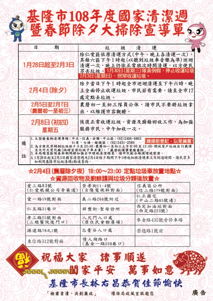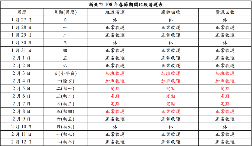 108年 農曆春節全國各地垃圾清運時程看這裡