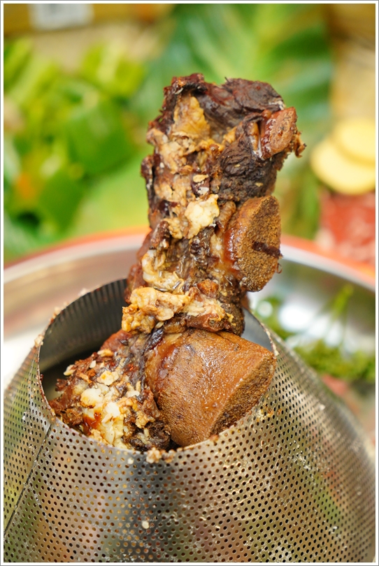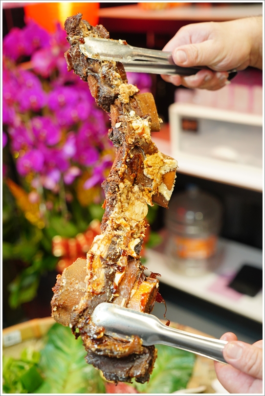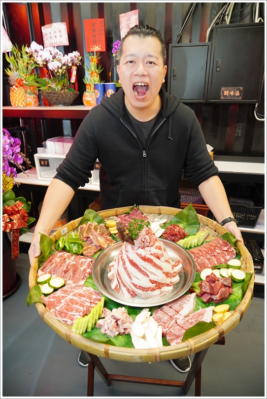 ▼這麼多肉肉就是要揪好友一起來分享,只見這個米篩大小的肉肉大到搬不進去包廂內(因為我們人太多還有小朋友XD),只好用盤子來分食啦!