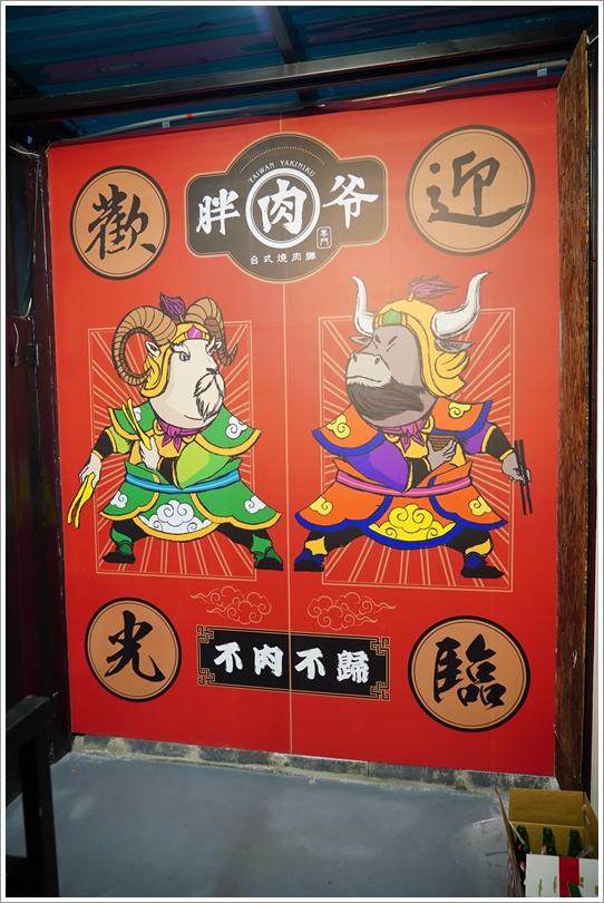 ▼牆上有雞大俠、羊將軍、牛大爺、豬高手等匯集在「胖肉爺」的門派底下,大家一起來這裡「無肉不歡」吧!