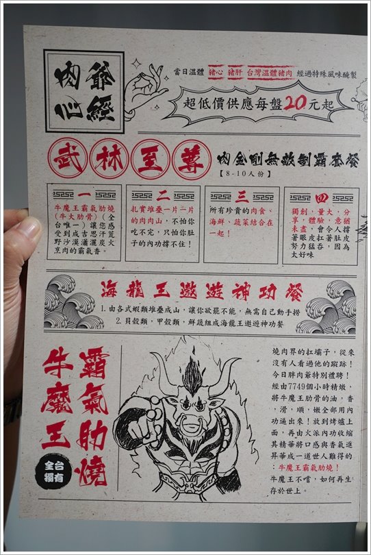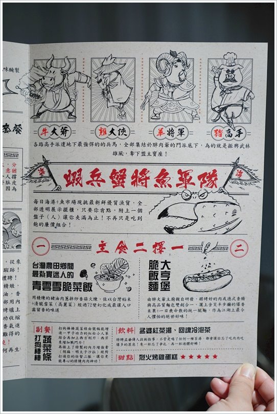 ▼像是肉金剛無敵制霸餐、海龍王遨遊神功餐、牛魔王霸王肋燒、蝦兵蟹將魚軍隊及主食、附餐、飲料、甜點等都有詳細的介紹!