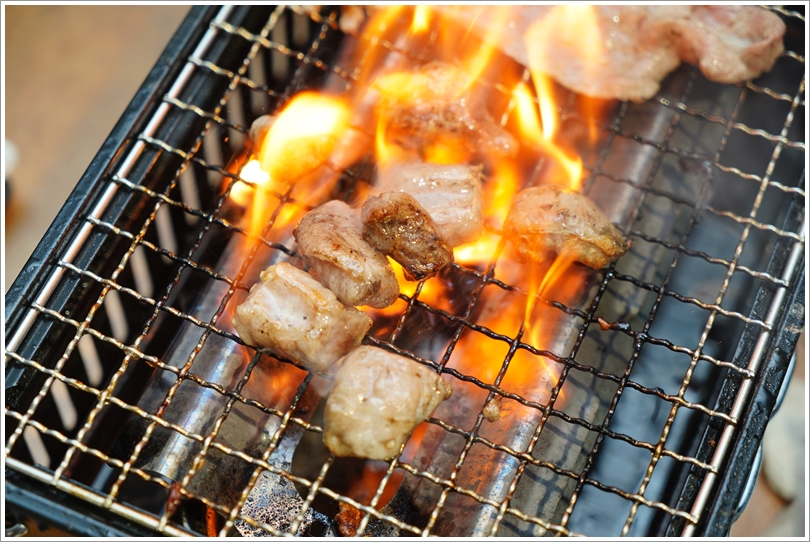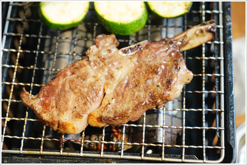 ▼接下來又繼續來烤杏鮑菇、紐西蘭菲力骰子及澳洲羊肩排,杏鮑菇吃起來爽脆又帶有水份,吃起來清甜又解膩;紐西蘭菲力骰子看起來非常豐厚,殊不知一口咬下口感意外的脆彈香嫩,裡頭還有飽滿的肉汁,在嘴裡越嚼越香!