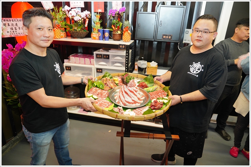 ▼沒多久肉金剛無敵制霸餐來啦~~~竟然由兩名大漢抬出場,還是採用米篩擺放,真是太霸氣啦!