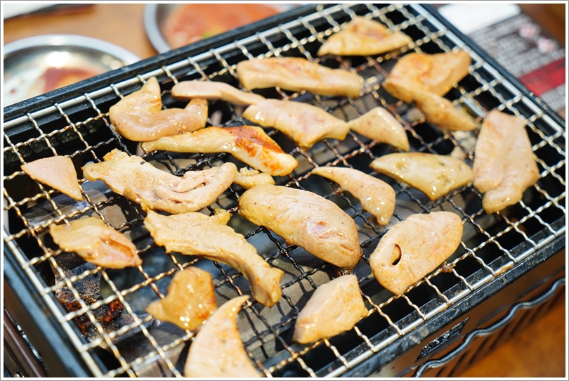 ▼他們家的豬心、豬肝都是醃漬過的,燒烤至帶點微微焦香即可享用!