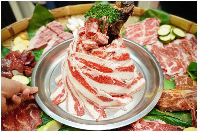 ▼中間這個巨大的肉山也很浮誇,最外圍以美國CH胸腹肉包覆著,裡頭還躲著美國厚切牛肋條及牛魔王霸氣肋燒,裡頭也是臥虎藏龍、好料滿滿啊!