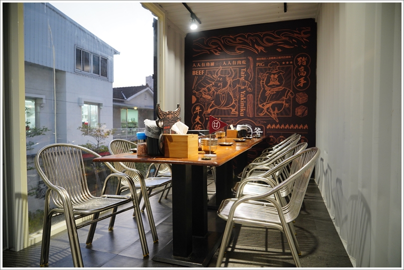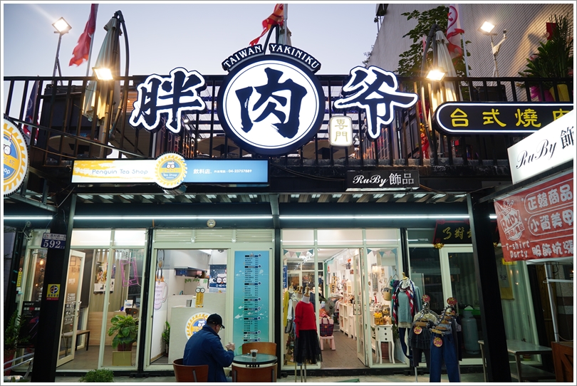 ▼這一區是之前藍貨櫃的舊址,現在把它改裝成酷炫的台式燒肉攤,感覺非常有特色啊!「胖肉爺」入口處就在花店隔壁的位置~上頭還有小小的扛棒,不怕找不到!