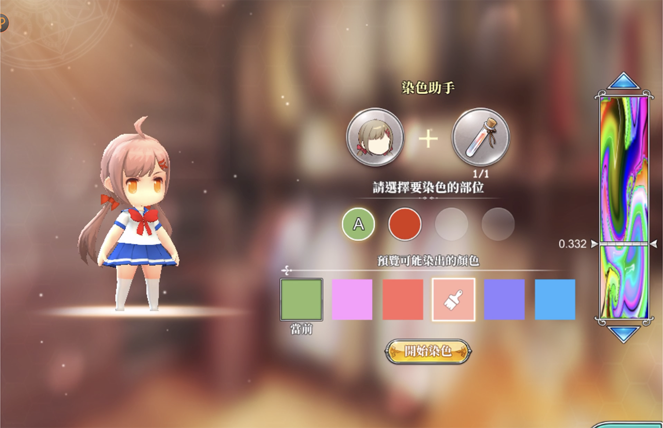 更要提的是,染髮的顏色居然是隨機的!而且色差超巨變(也太刺激)不過還是可以稍微利用右邊的的選色系統,調出最想要的五種顏色,才確定染色(小心不要又染回原本的顏色啊!)