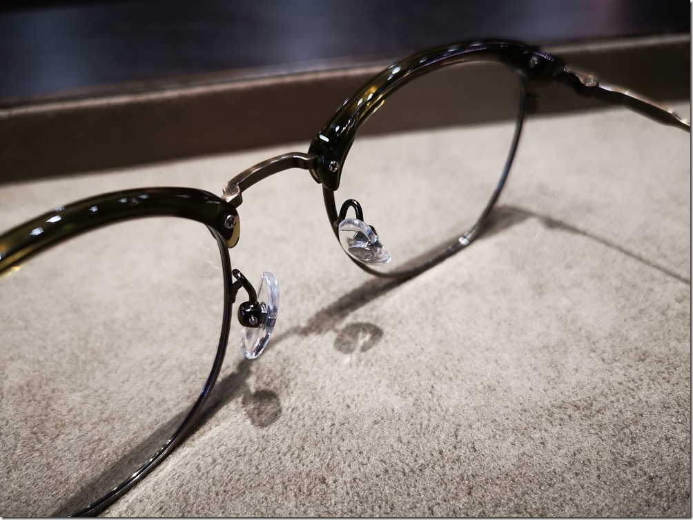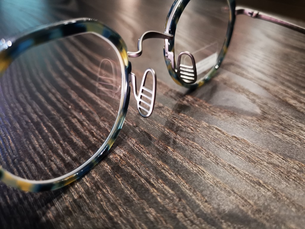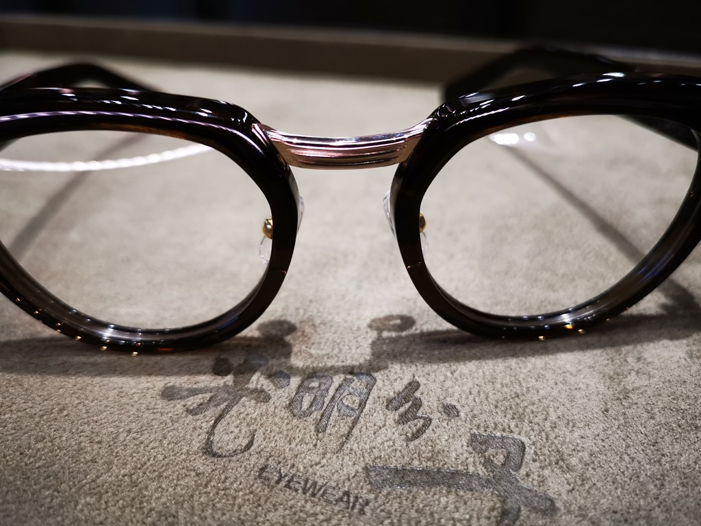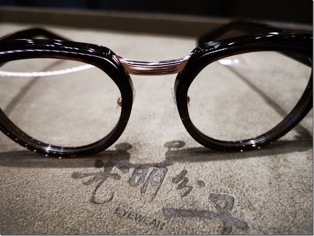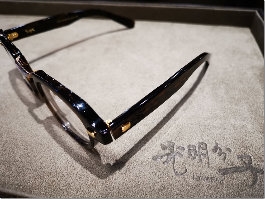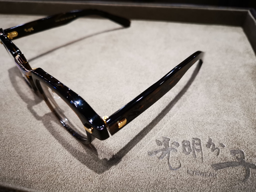 999.9 這品牌以舒適、耐用與容易配戴三個特質在日本非常受到歡迎,在光明分子東門店中還設有店中店。這次試戴的是金屬與膠材框混合框,上緣仿玳瑁色調,下方金屬絲,兩相搭配下有種較為嚴肅的感受。
