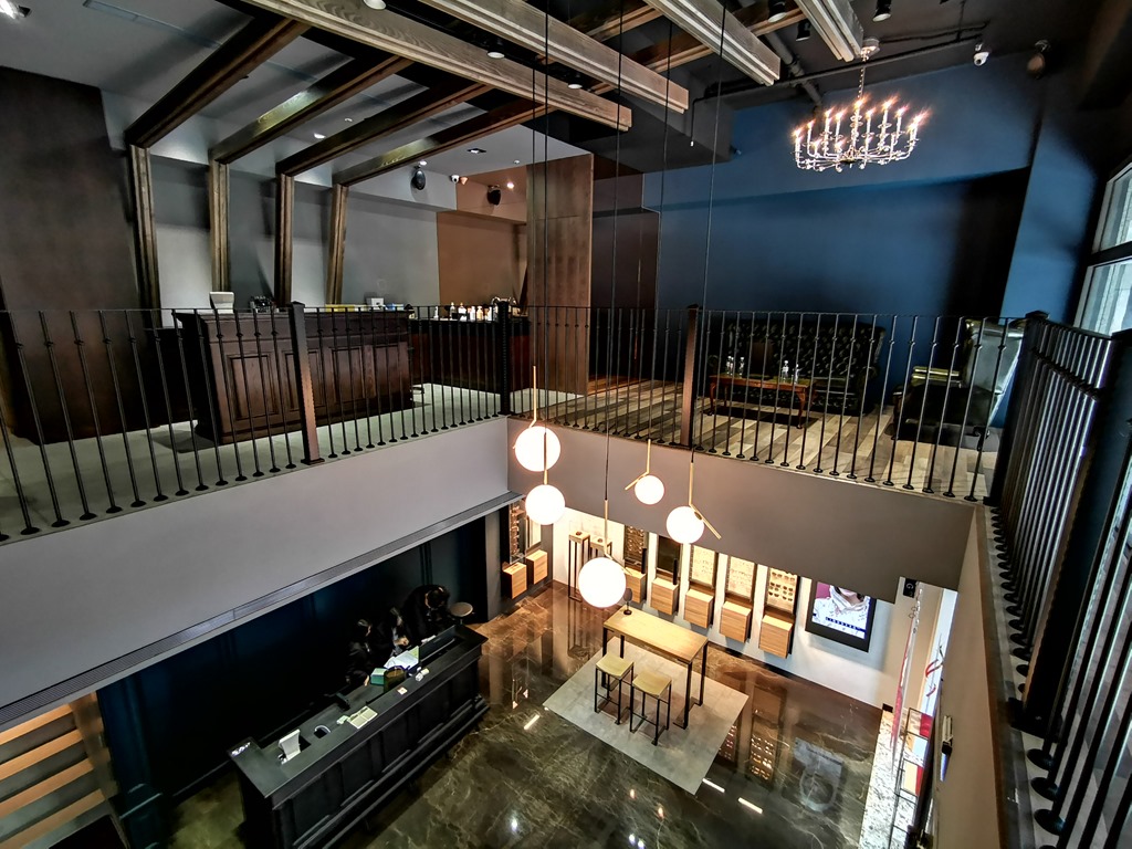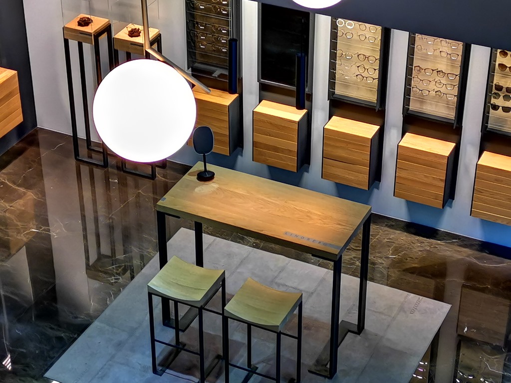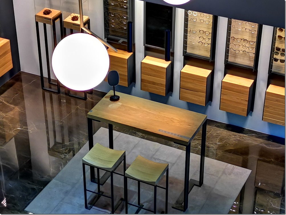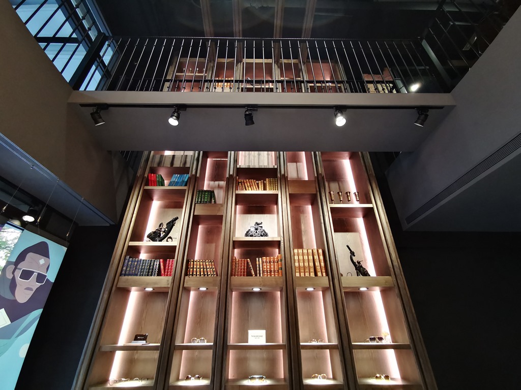 先帶大家逛一圈光明分子歌劇院店,一樓是挑高的接待中心與鏡架展示區,一開始的需求詢問與鏡架挑選都會在這邊,八米挑高樓中樓的設計讓空間不只寬敞,還更氣派。各品牌鏡架都有專有展示架,特別是我最愛的丹麥品牌 LINDBERG,更有專門的展示區。