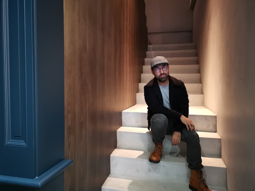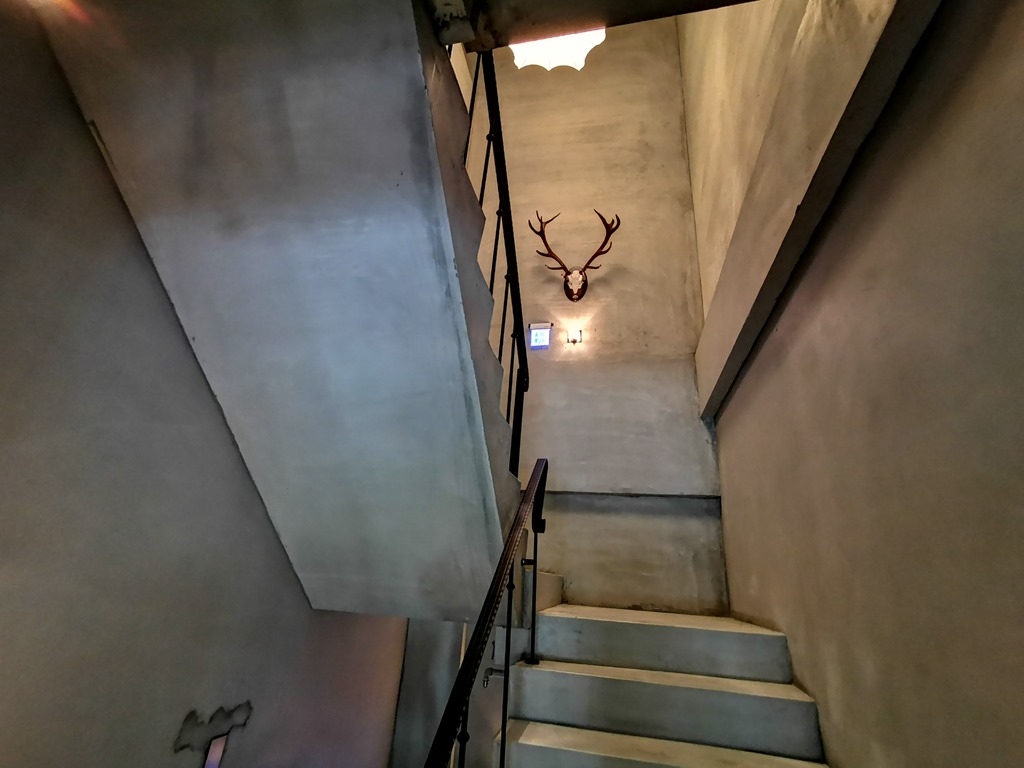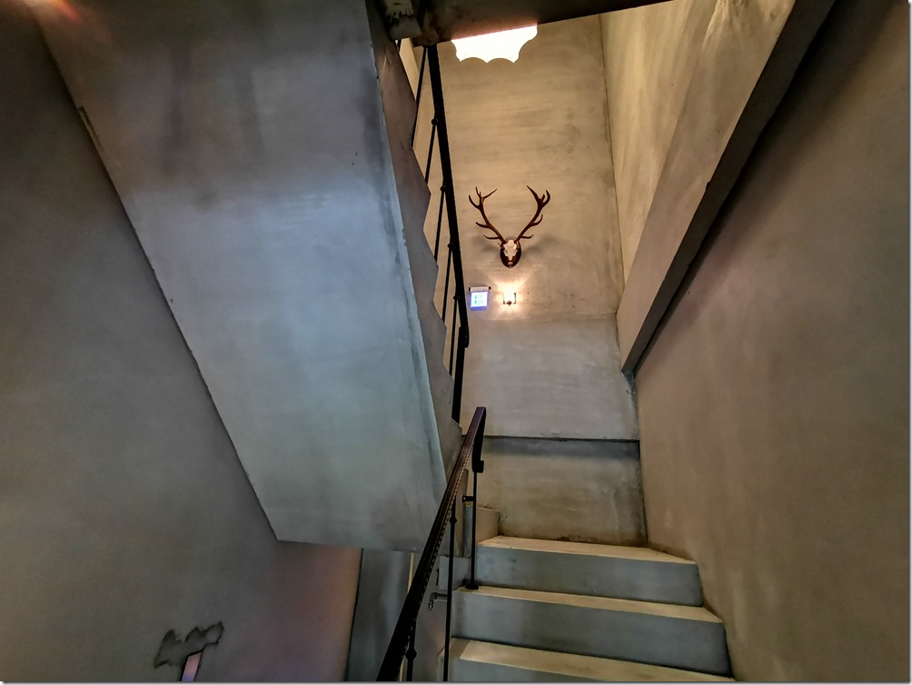 從二樓通往三樓的樓梯,特別只用水泥抹過,完全不上漆,在燈光照射下更有層次感,也更有歐洲古建築的感受。