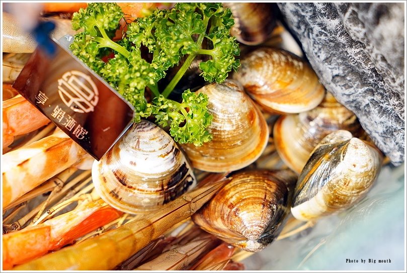 ▼看到這個水族缸讓大口想到以前在玩的生態缸,沒想到也可以當作擺盤使用~裡頭還擺了滿滿的蝦子及各式海鮮,特別又吸睛!