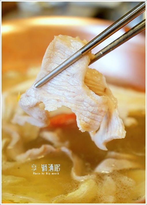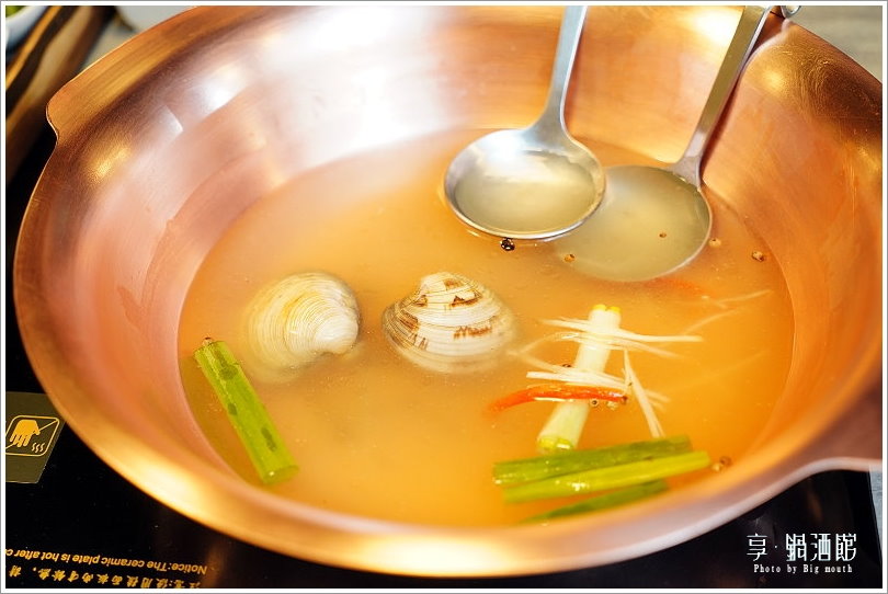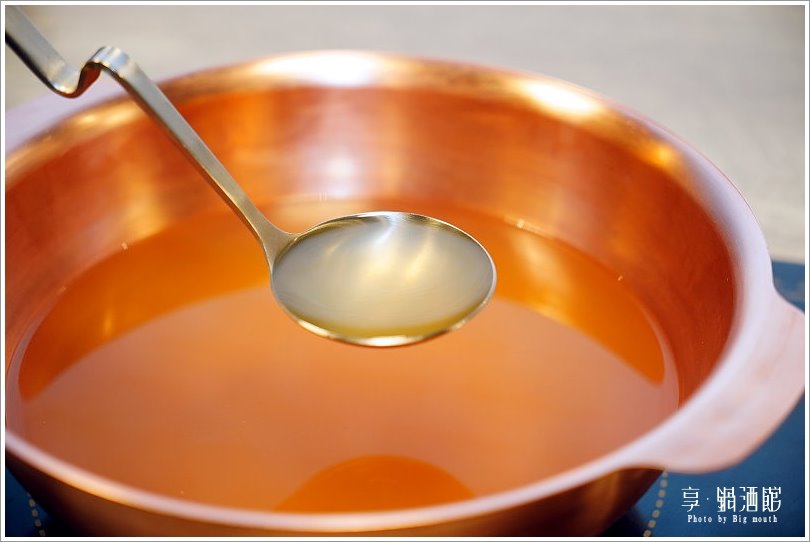 ▼服務人員建議大口這時候可以先享用湯頭,喝起來不僅有微微的藥材香氣,還帶點白胡椒粒的香味與牛奶貝的鮮香,味道意外的合拍呢!之後還可以放入蔬菜下去熬煮,喝起來味道會更加甜美多層次!