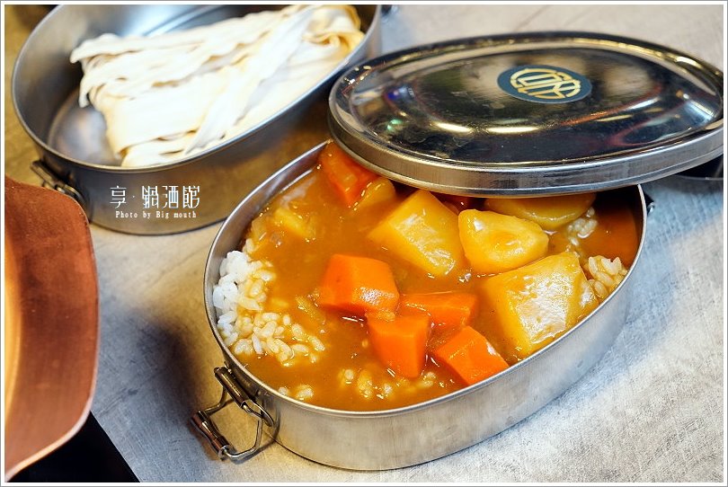 ▼在等待湯頭煮滾的同時,建議大家可以跟大口一樣先吃便當(大誤)~~不過在火鍋店吃咖哩飯便當真的是很特別的體驗啊(笑)!
