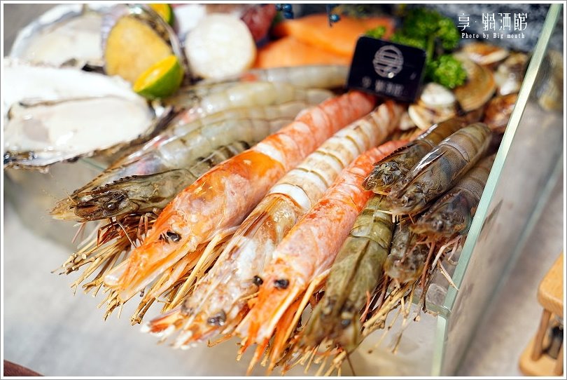 ▼裡頭除了有明蝦、天使紅蝦、大草蝦、藍鑽蝦、白蝦之外,還有廣島牡蠣、大蛤蜊、干貝、透抽、鯛魚、鱸魚、鮭魚等,種類多元又豐富!綜合海鮮拼盤搭配獨特擺飾,看起來好像藝術品般讓人捨不得吃啊!