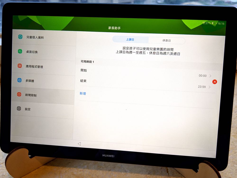 更進一步的家長還可以從「家長助手」裡設定小孩的使用時間,例如每天只能在幾點到幾點使用、每次只能用幾分鐘等,一來能夠保護小孩的眼睛,不用擔心他們使用太久眼睛會累,二來還可以讓小孩養成自律的習慣跟良好親子關係!