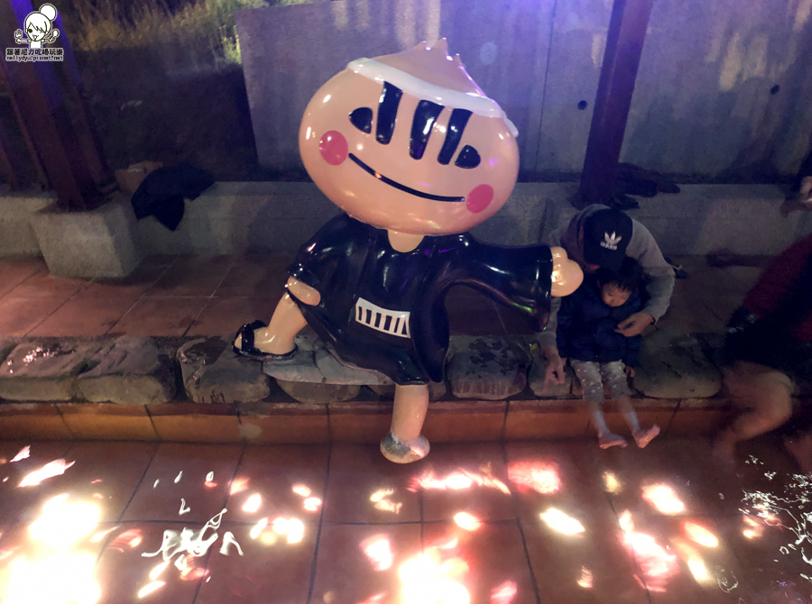 溫泉還有打投影燈,讓足湯多了燈光幻影之美,溫暖的足湯讓小朋友都好愛
