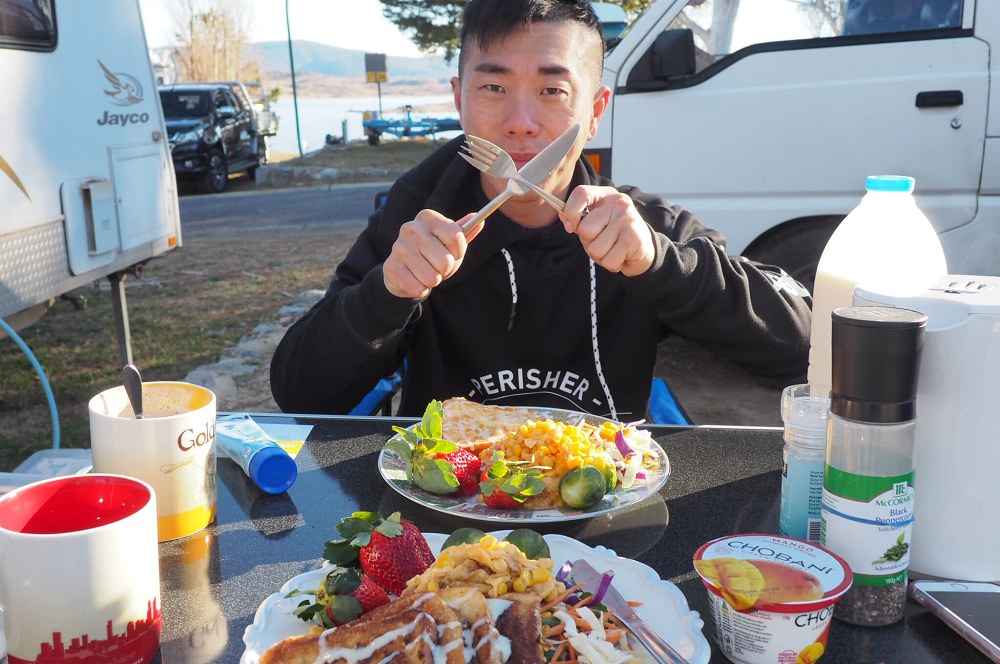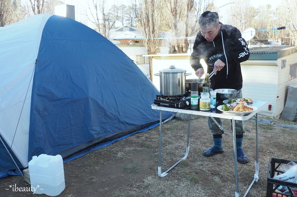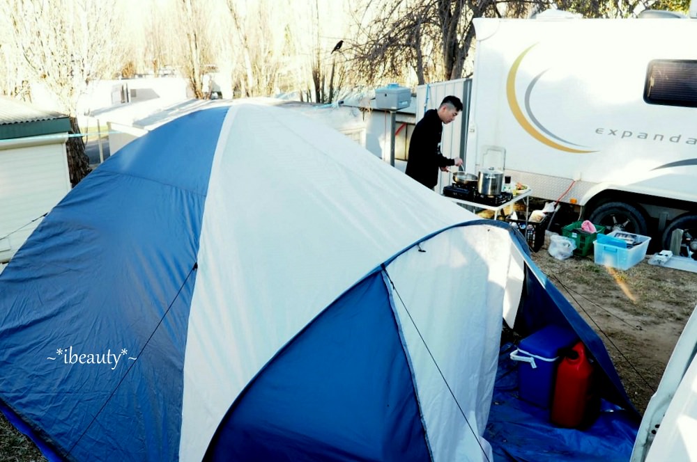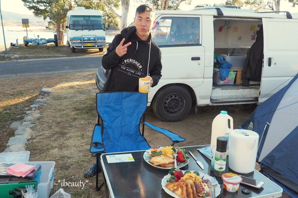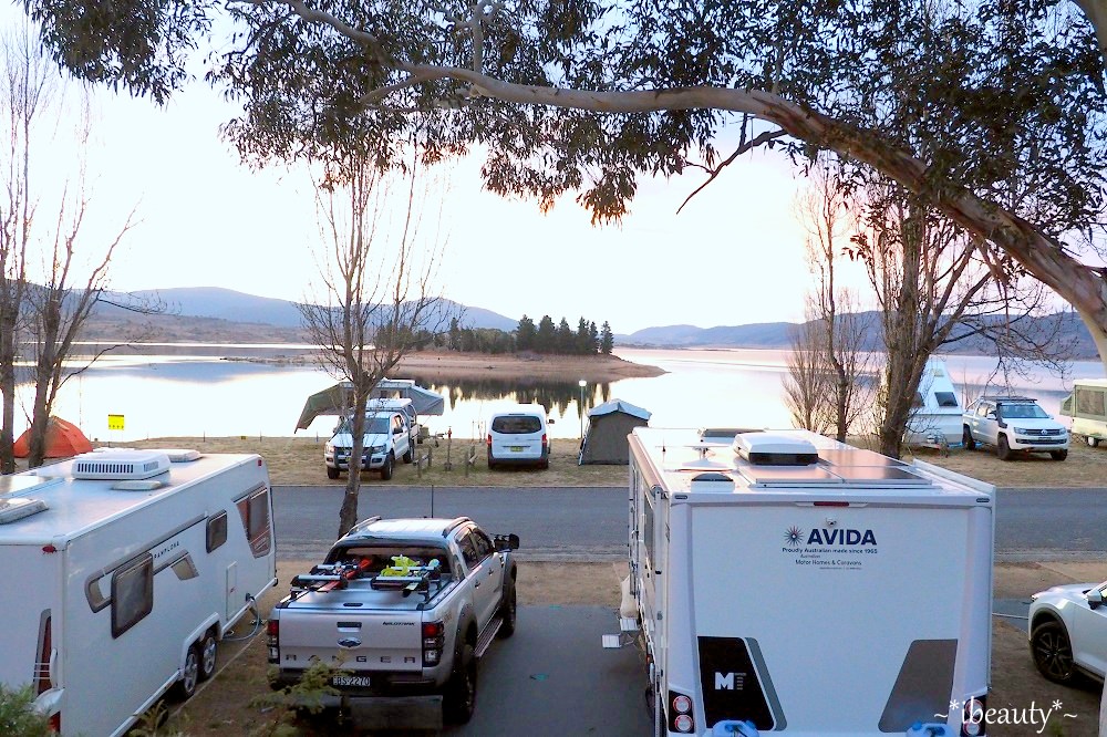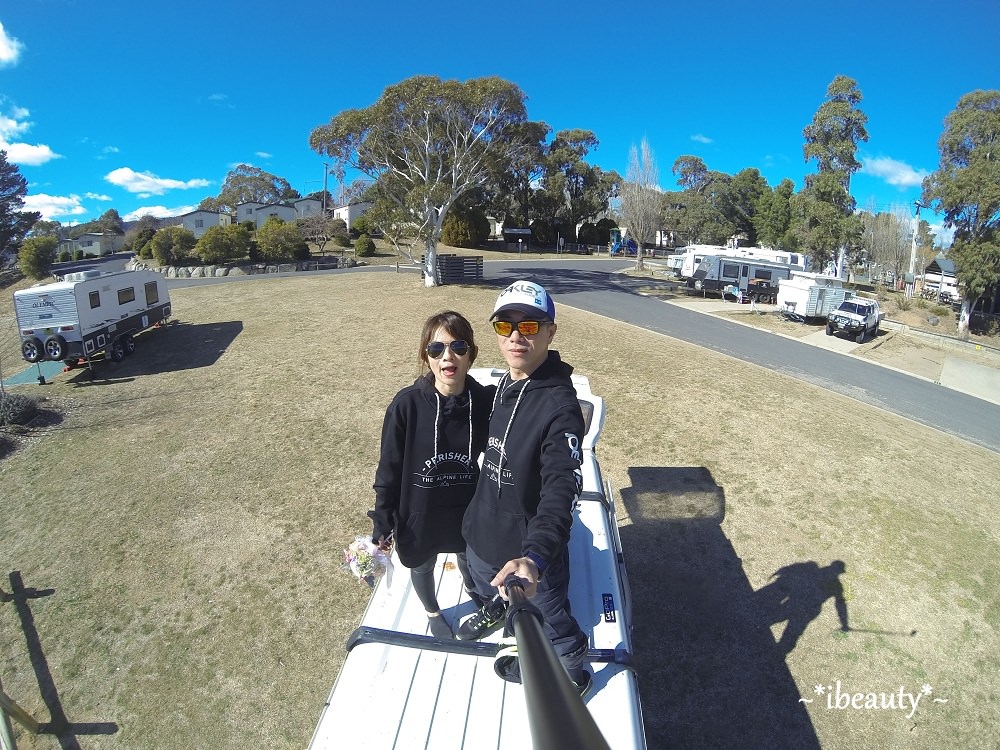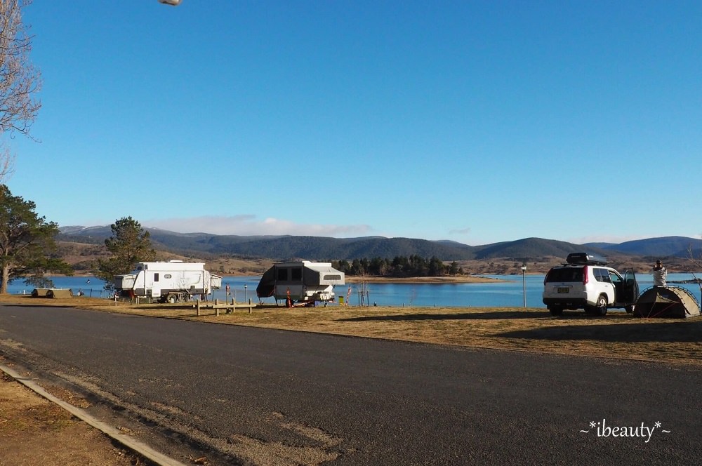 這裡的營地很大,風景很優美,這幾天在Jindabyne看到很多不同露營方式,從簡單的單人營帳、家庭帳、車頂帳篷、露營車、車頂架著自行車、滑板、後車箱打開就是超大音響、側邊可以拉出餐檯、後面可以變出一整套開放式音響,再架個BBQ烤爐、從冰桶抓幾隻啤酒,立馬可以開趴,覺得超酷! 我還有看到一些拖著自己的小艇,附近有很多適合划船或是釣魚的地方,也是滑雪以外很棒的選擇!大家的裝備真是非常多樣,我都覺得他們的車很像變形金剛,完全精準詮釋:「麻雀雖小五臟俱全」這句形容詞,從車子的外型、設備、裝飾方式,也可以看出主人的個性、喜好,實在很有趣!