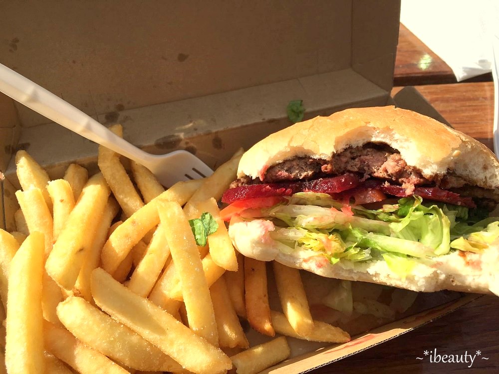 因為我一直嚷著要買毛帽、要買外套,所以我們也去了附近的商店街晃晃,順便吃了很巨大的漢堡餐(你說,如果飲料是重量杯可樂,這一餐抵三餐,不為過吧!)這裡的酒吧也很不錯,有自己的在地特色,聽在當地工作的朋友說,這裡還有一年一度的Jindabyne選美活動喔!商店街不會很雜亂,一些小川堂的牆上也會介紹小鎮歷史,到中庭花園的戶外用餐區曬著暖暖的冬日陽光、吃個早午餐、喝杯咖啡,會被曬得很舒服!