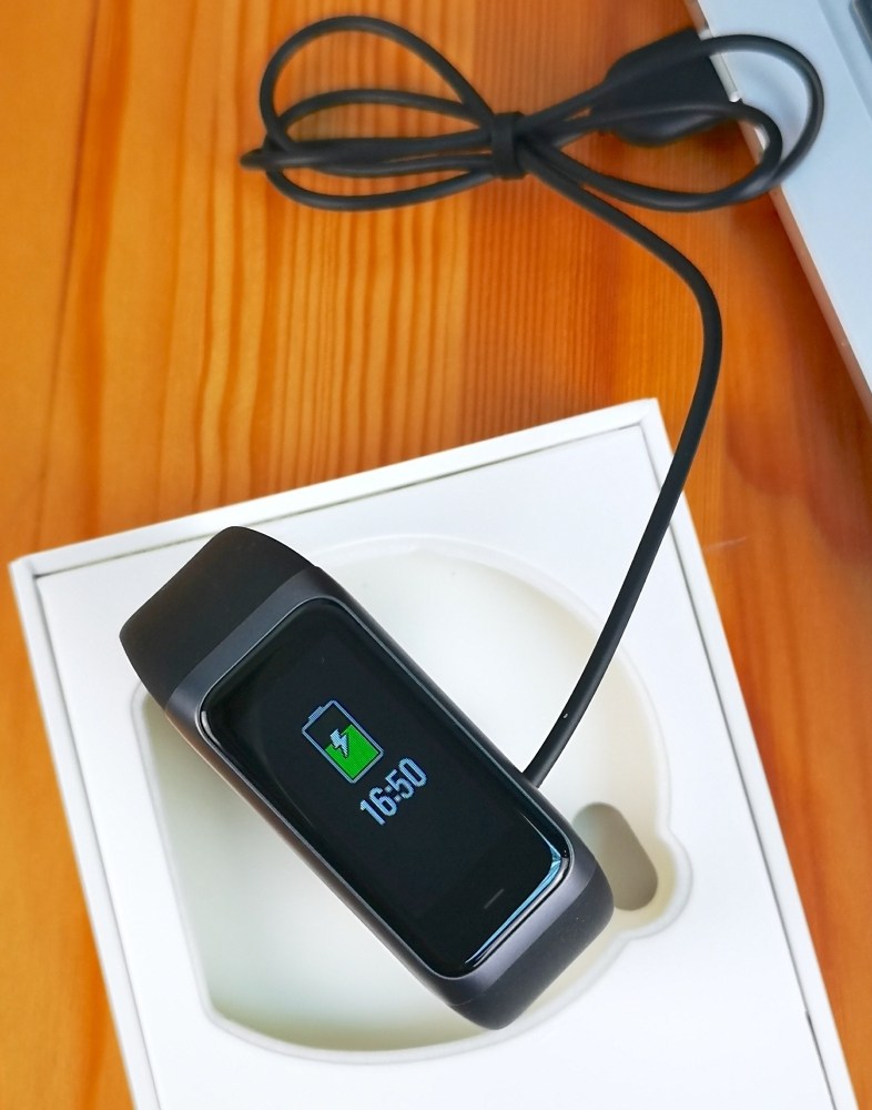 充電線是磁吸式,稍微輕觸充電觸點就會開始充電,官方資料顯示續航力達20天。